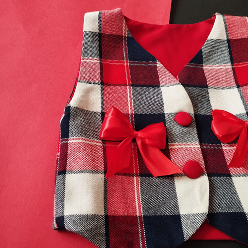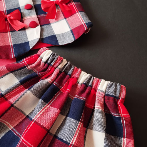 ست جلیقه و دامن نوزادی طرح چهارخونه