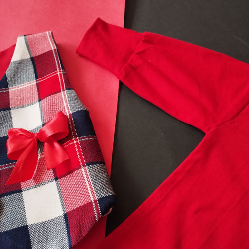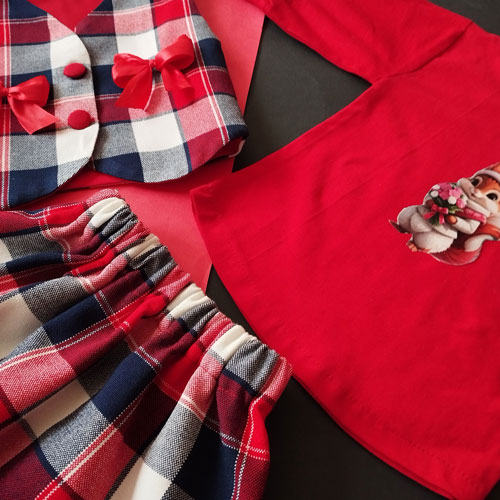 ست جلیقه و دامن نوزادی طرح چهارخونه